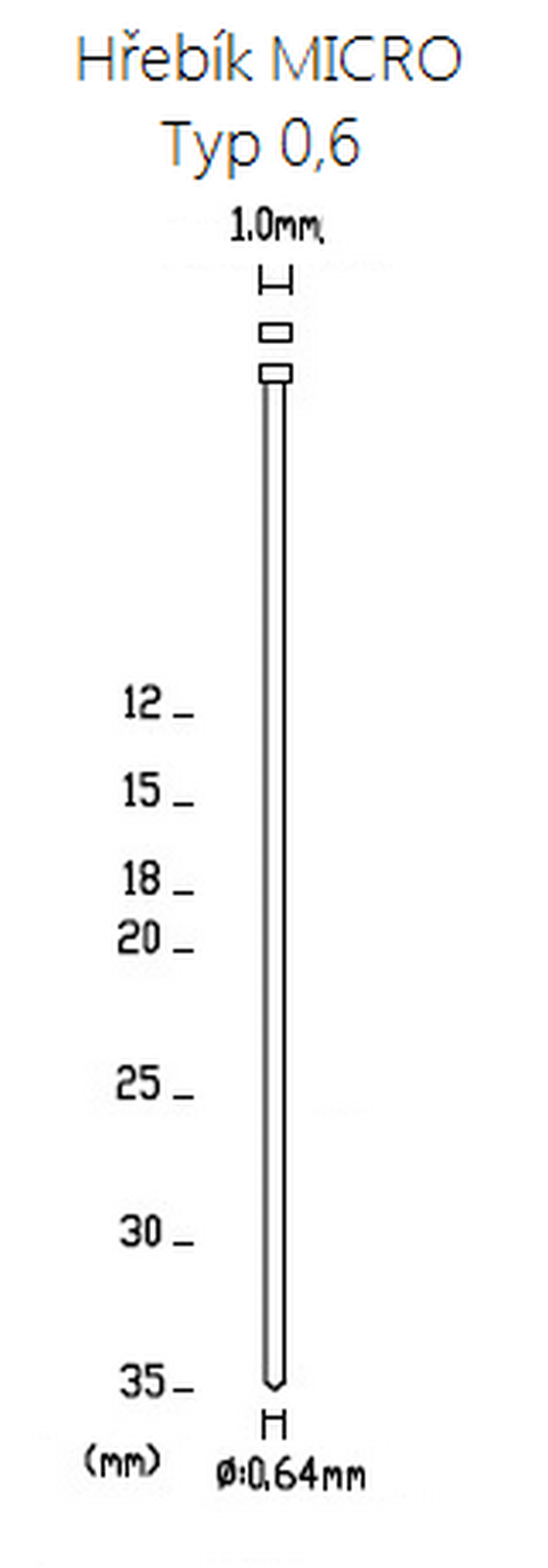 Nejtenčí hřebík (brad) pro málo viditelné spoje.