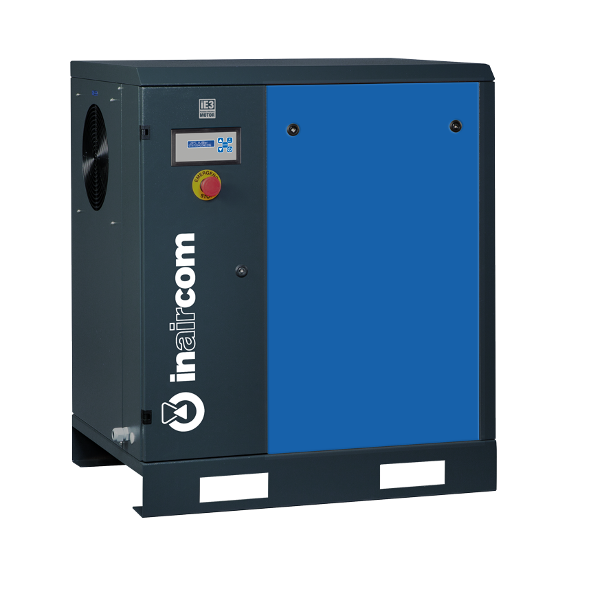Tíchý kompresor, vybavený účinným IE3 motorem a řídící jednotkou DNAir 1. Šroubový blok je poháněn motorem prostřednictvím poly-V řemenu s dlouhou životností.