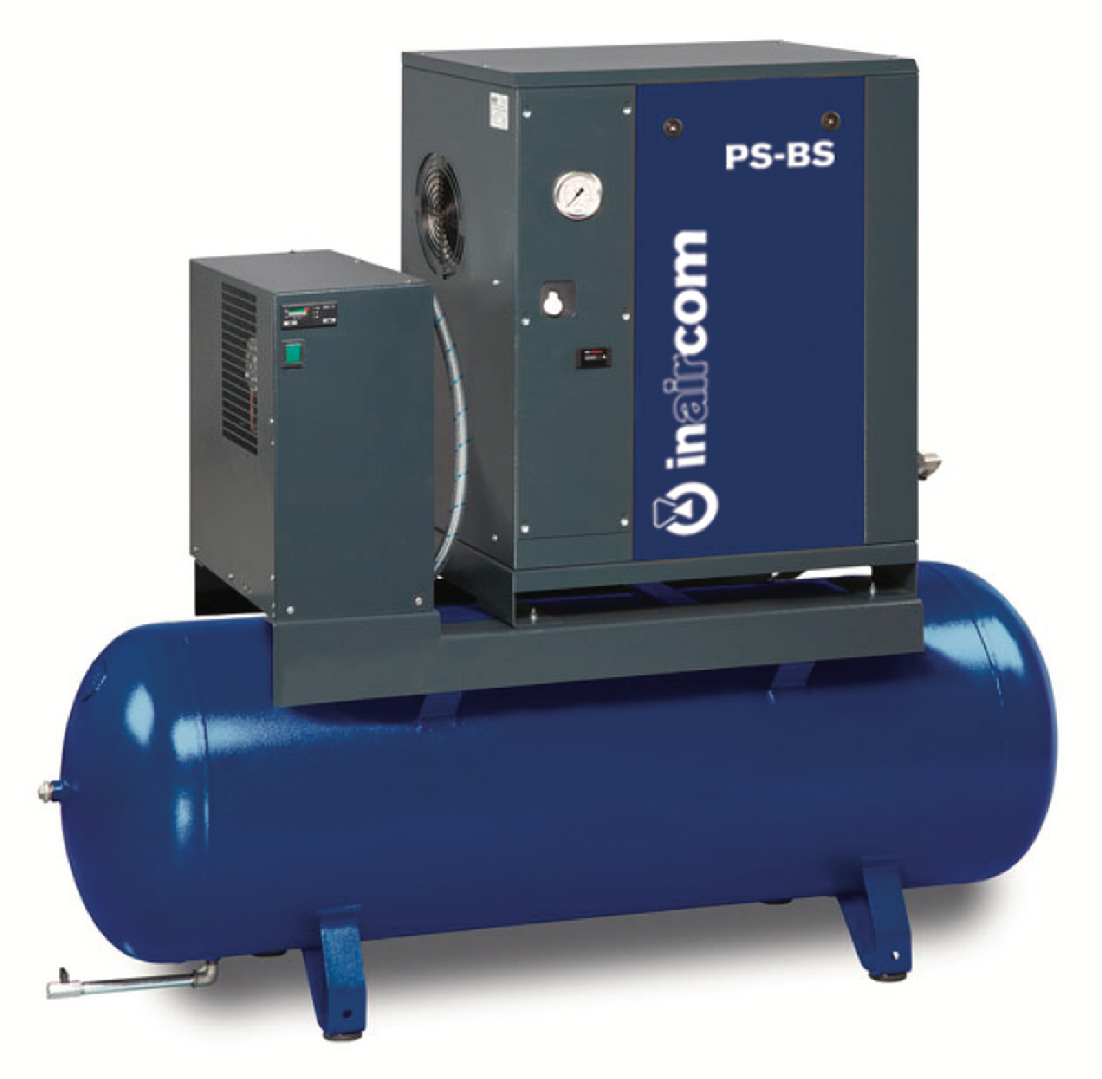 Základní řada malých šroubových kompresorů s příkony od 2,2 do 4 kW, vybavených účinným IE3 motorem. Šroubový blok je poháněn motorem prostřednictvím poly-V řemenu s dlouhou životností. Tyto nejjednodušší stroje jsou ovládány tlakovým spínačem v režimu START /STOP